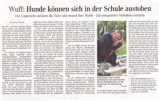 Zeitungsausschnitte - Hundeschule in Ravensburg